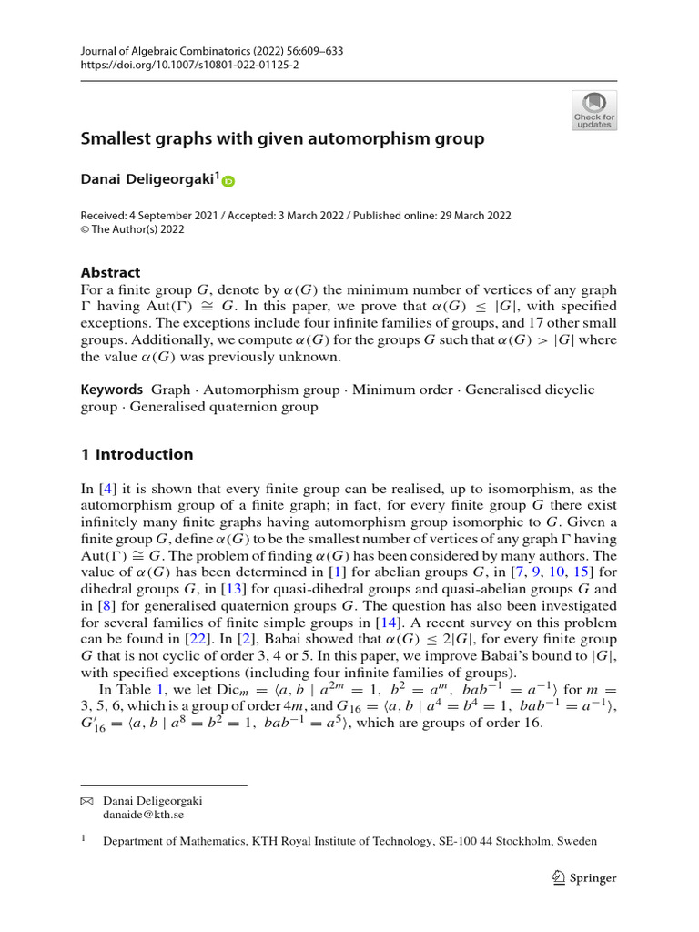 Smallest Graphs With Given Automorphism Group: Danai Deligeorgaki | PDF ...
