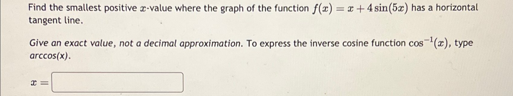 Solved Find the smallest positive x-value where the graph of | Chegg.com