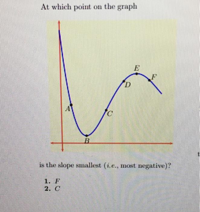 Solved At which point on the graph is the slope smallest | Chegg.com