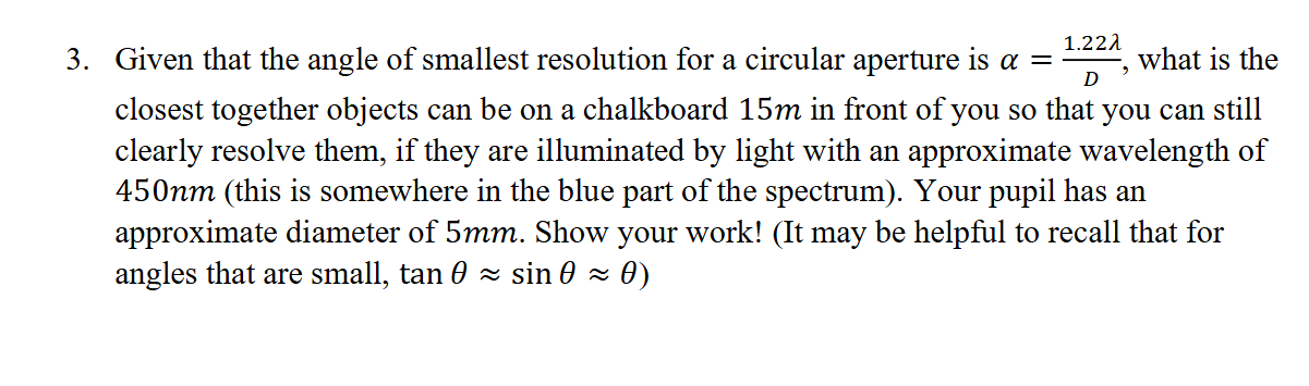 Solved Given that the angle of smallest resolution for a | Chegg.com
