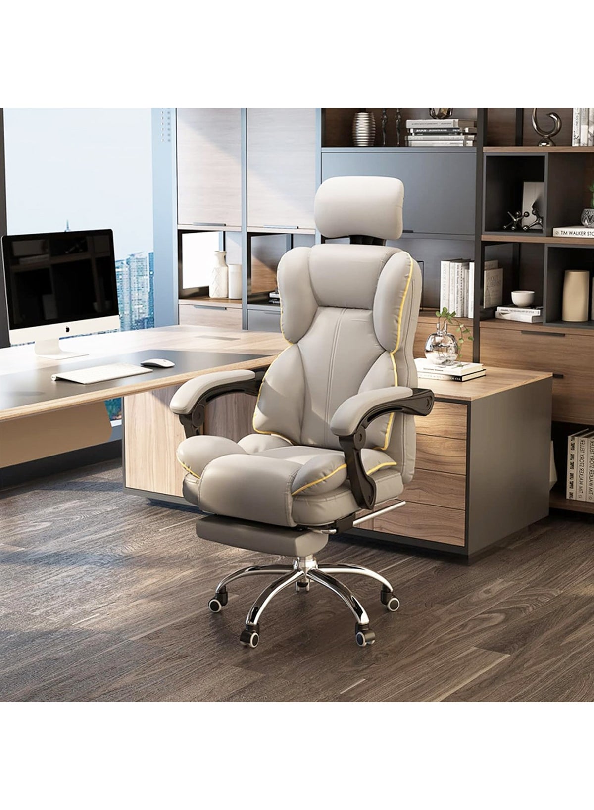 Leather Adjustable Height Ergonomic Computer Chair with Headrest and ...