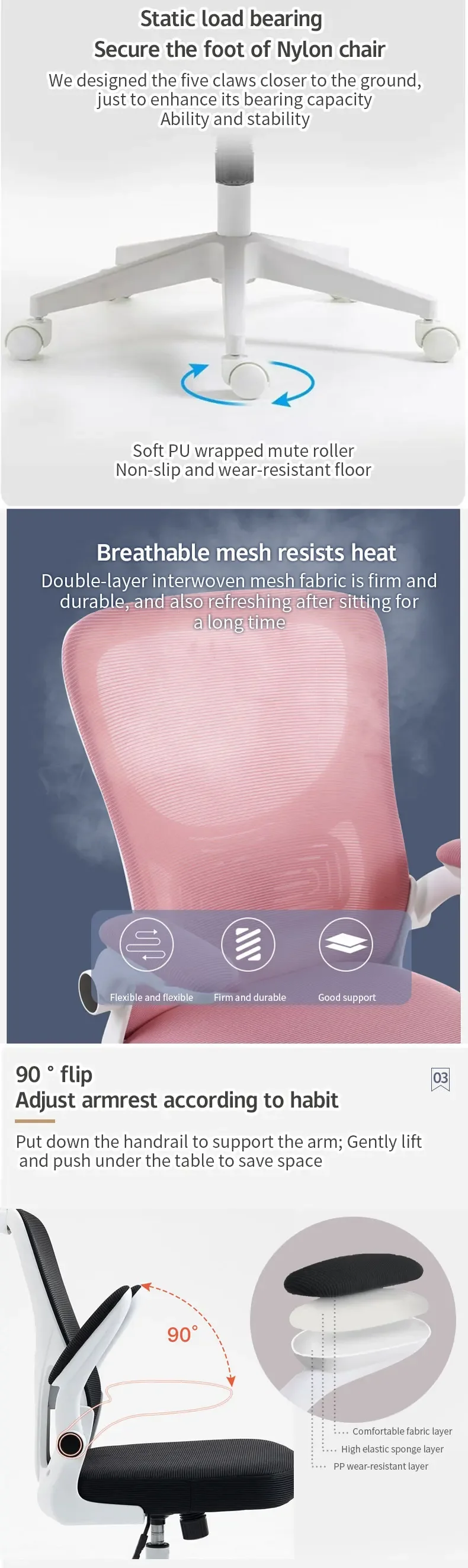 Ergonomic Chair Adjustable Swivel Mid Back Computer Chairs with Flip-Up ...