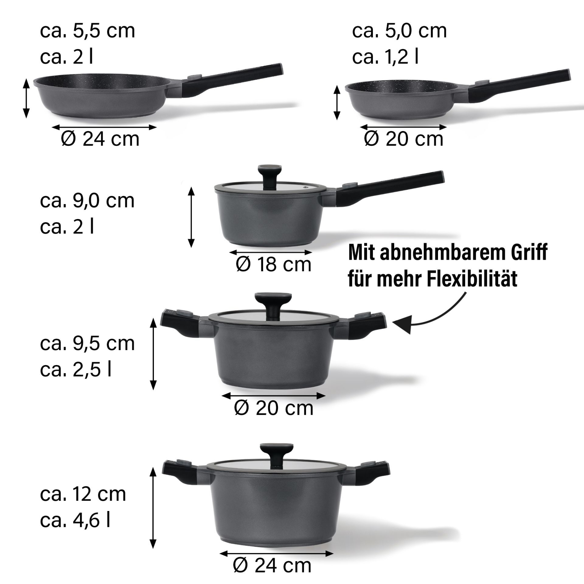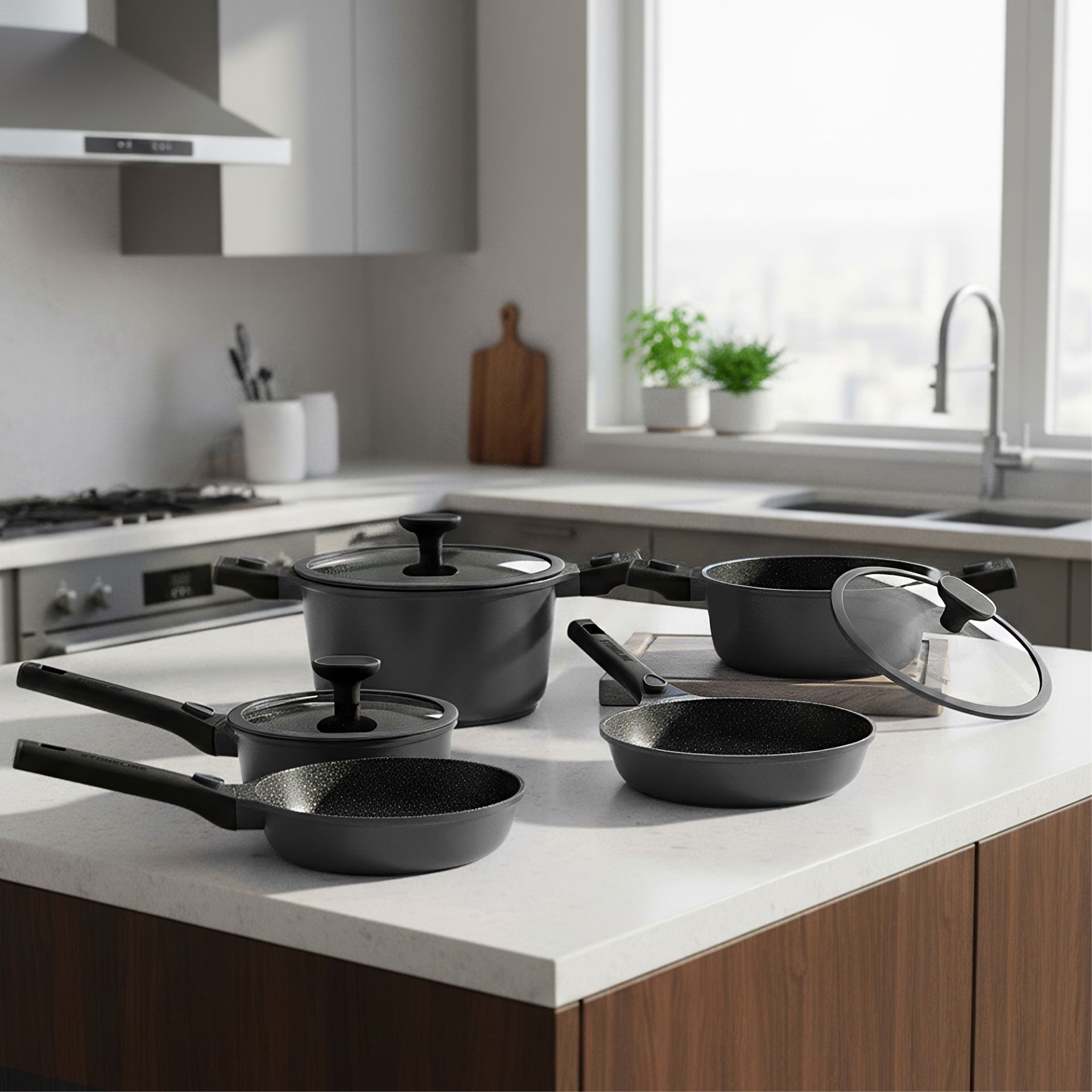 STONELINE® SMART cookware set, 8 pieces, 18/20/24 cm | with lids