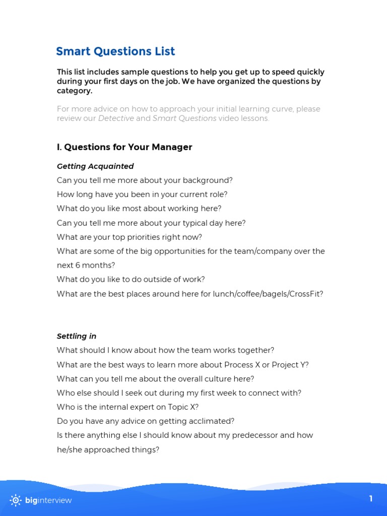 Intelligent Questions To Ask