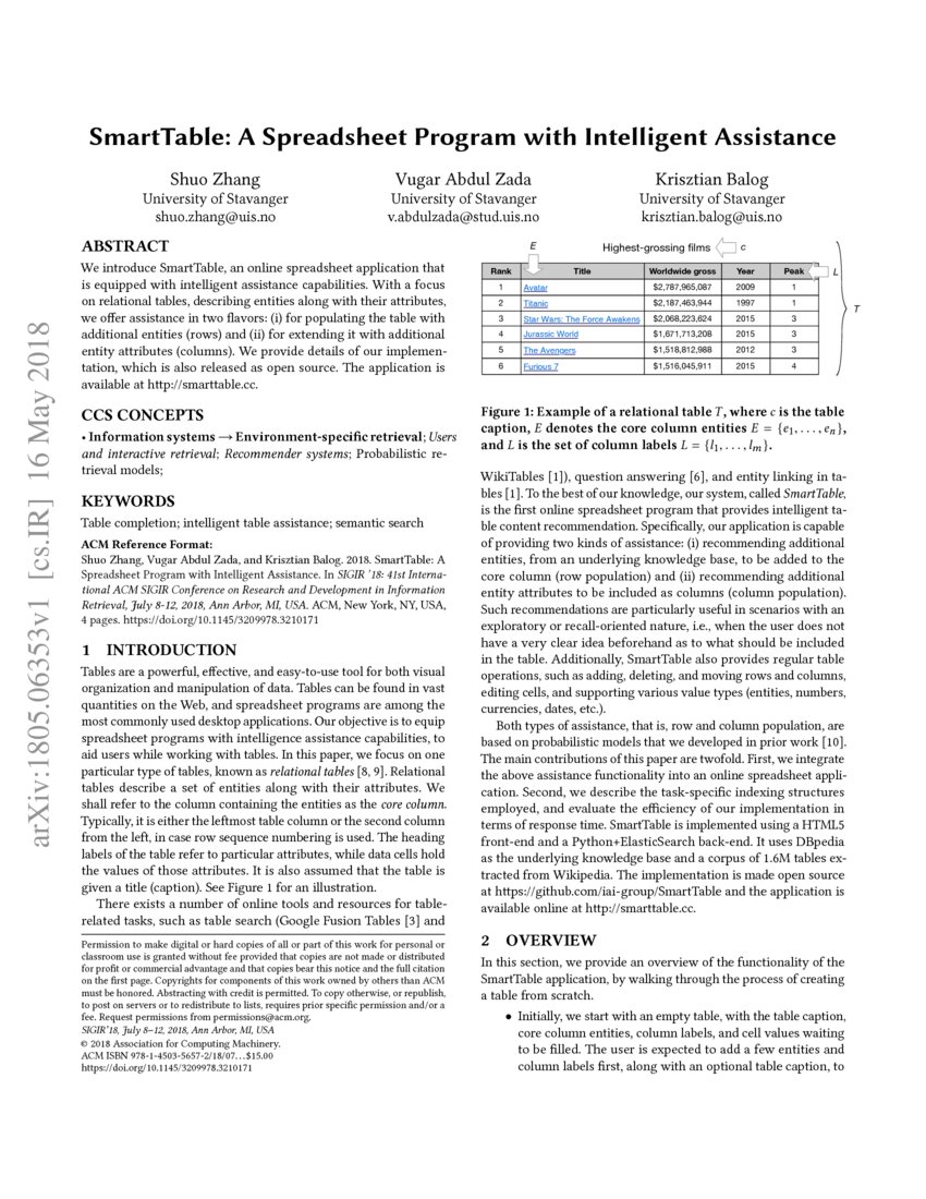 SmartTable: A Spreadsheet Program with Intelligent Assistance | DeepAI