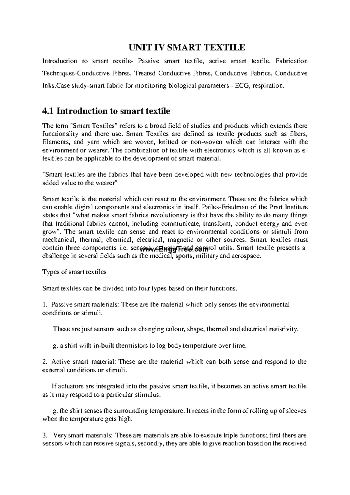 UNIT IV Smart Textiles & UNIT V Wearable Systems Applications Overview ...