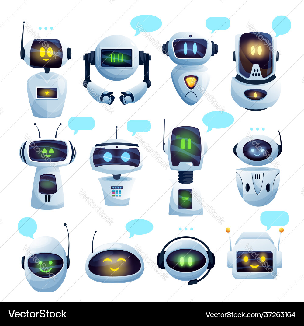 Robots and chatbots, cartoon AI bots and cyborgs 23511011 Vector Art at ...
