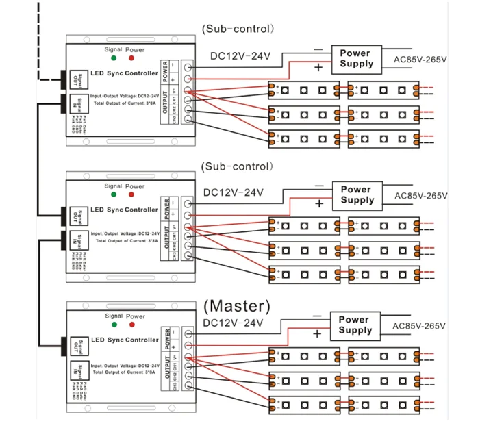 30A DC12-24V 360W 720W RF Wired Sync LED Strip Controller RGB - Sync ...