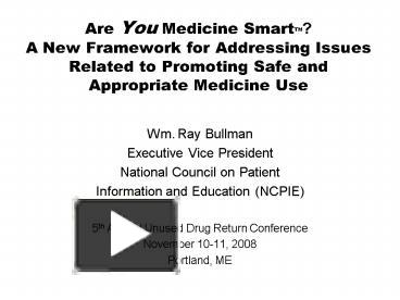 PPT – Are You Medicine SmartTM A New Framework for Addressing Issues ...