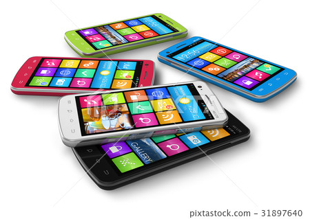 Set of color touchscreen smartphones - Stock Illustration [31897640 ...