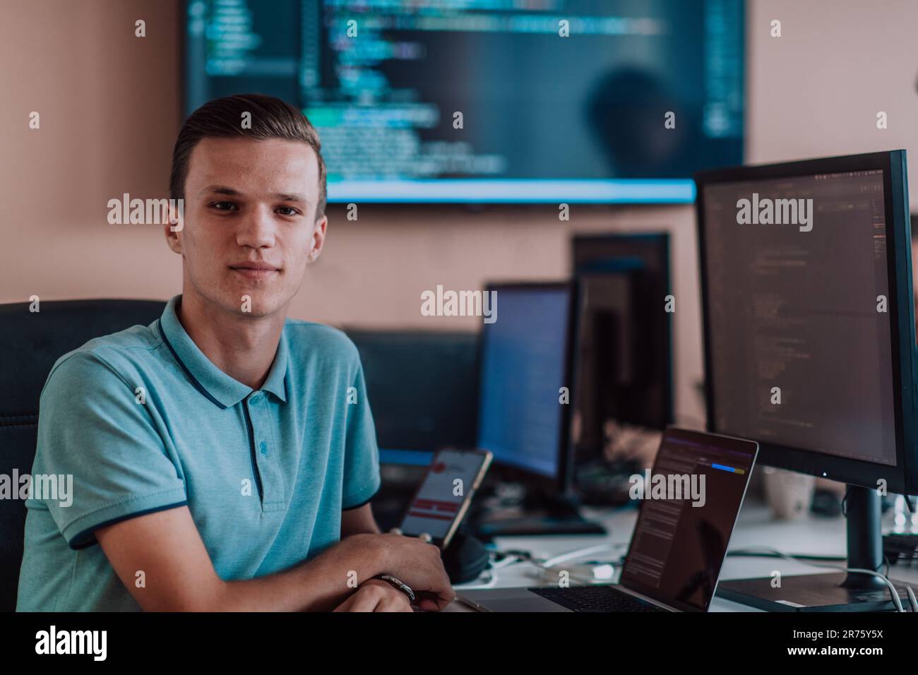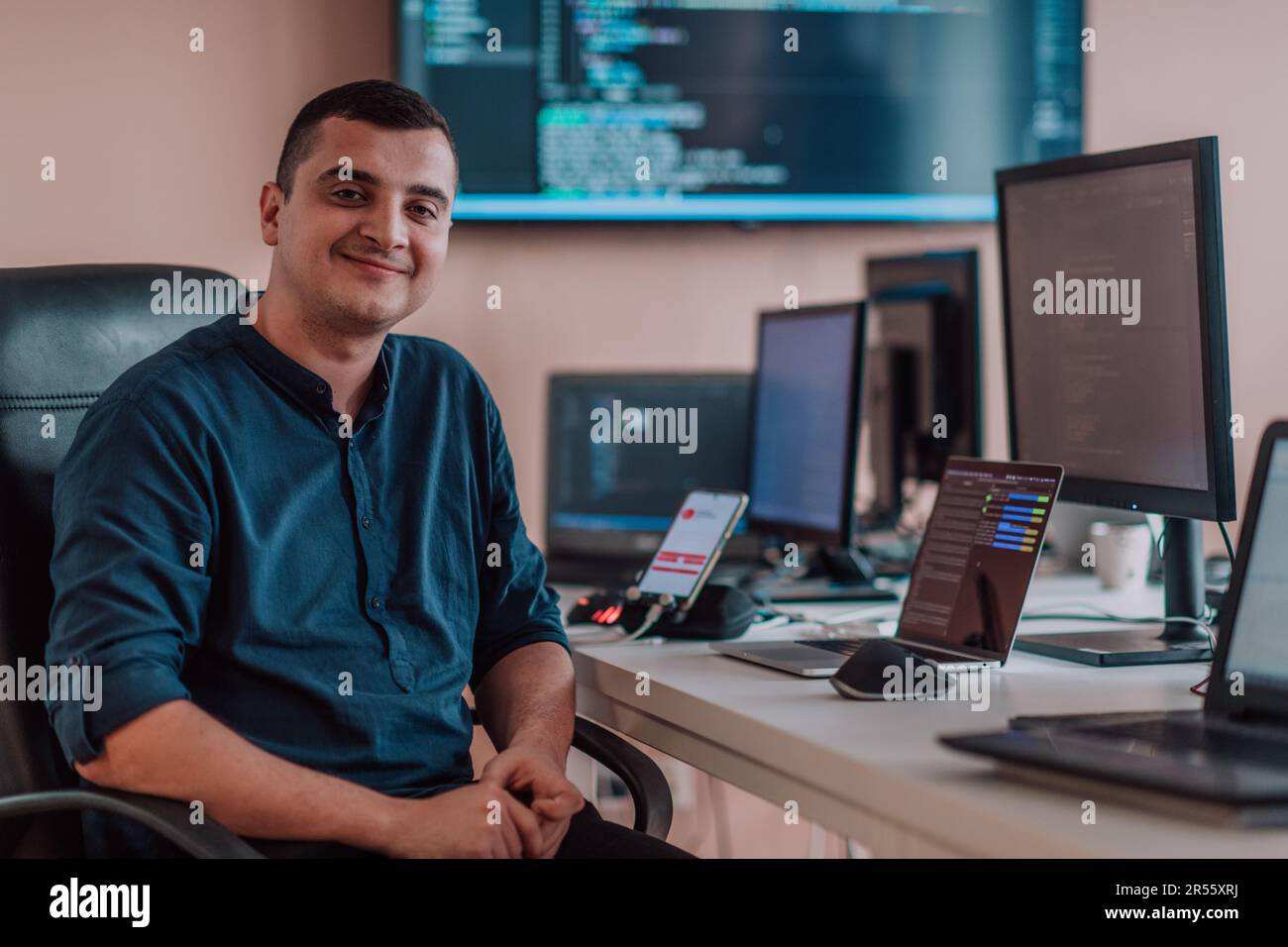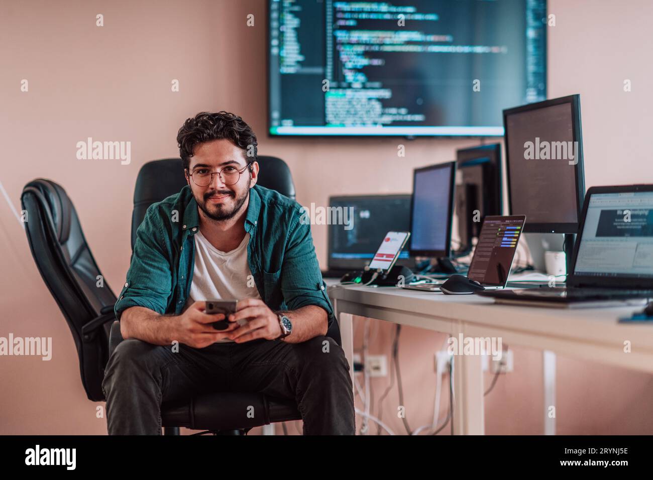Modern Programmer Smartphone Sitting By Workplace Stock Photo ...