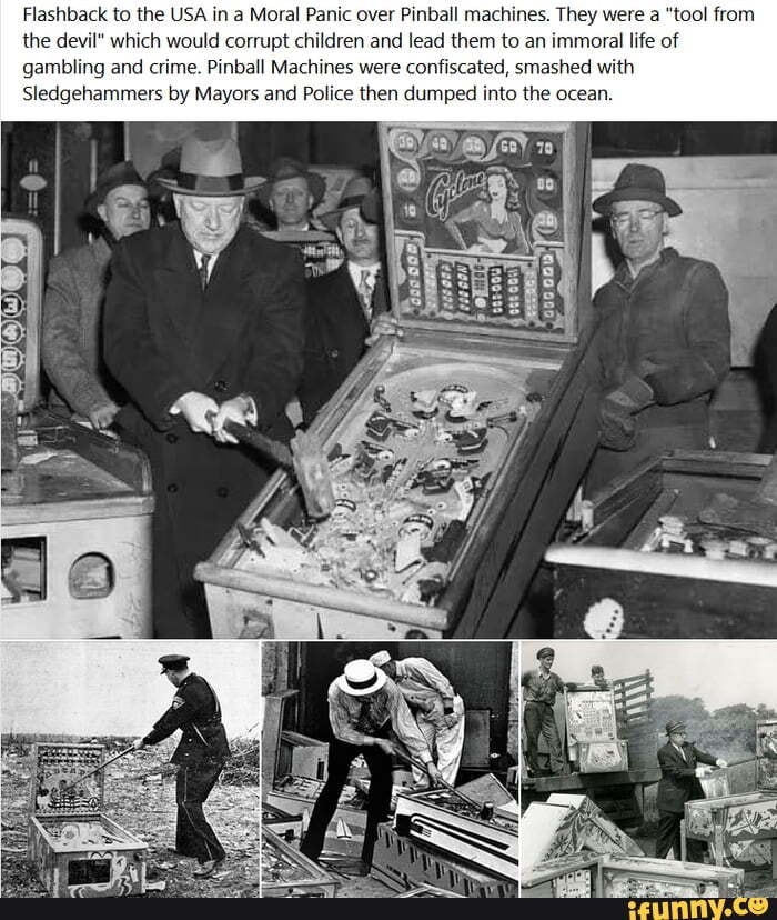 Ancient - Pinball machines being destroyed during the era of pinball ...