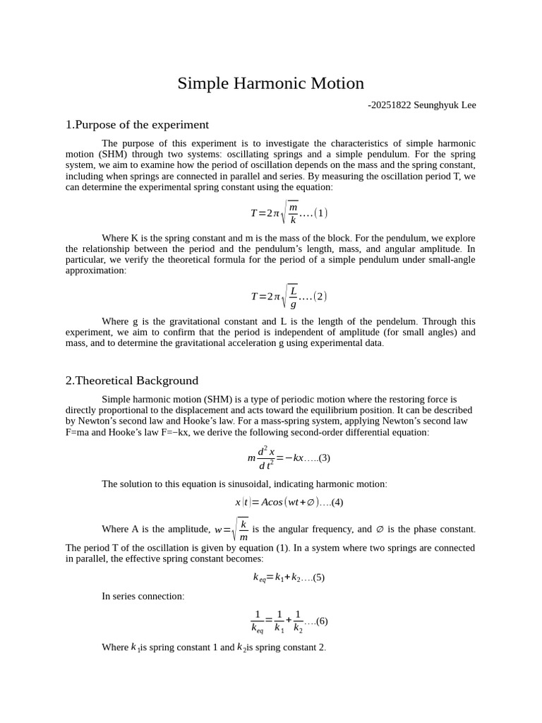 Exploring Simple Harmonic Motion: Lab Results & Analysis | Course Hero