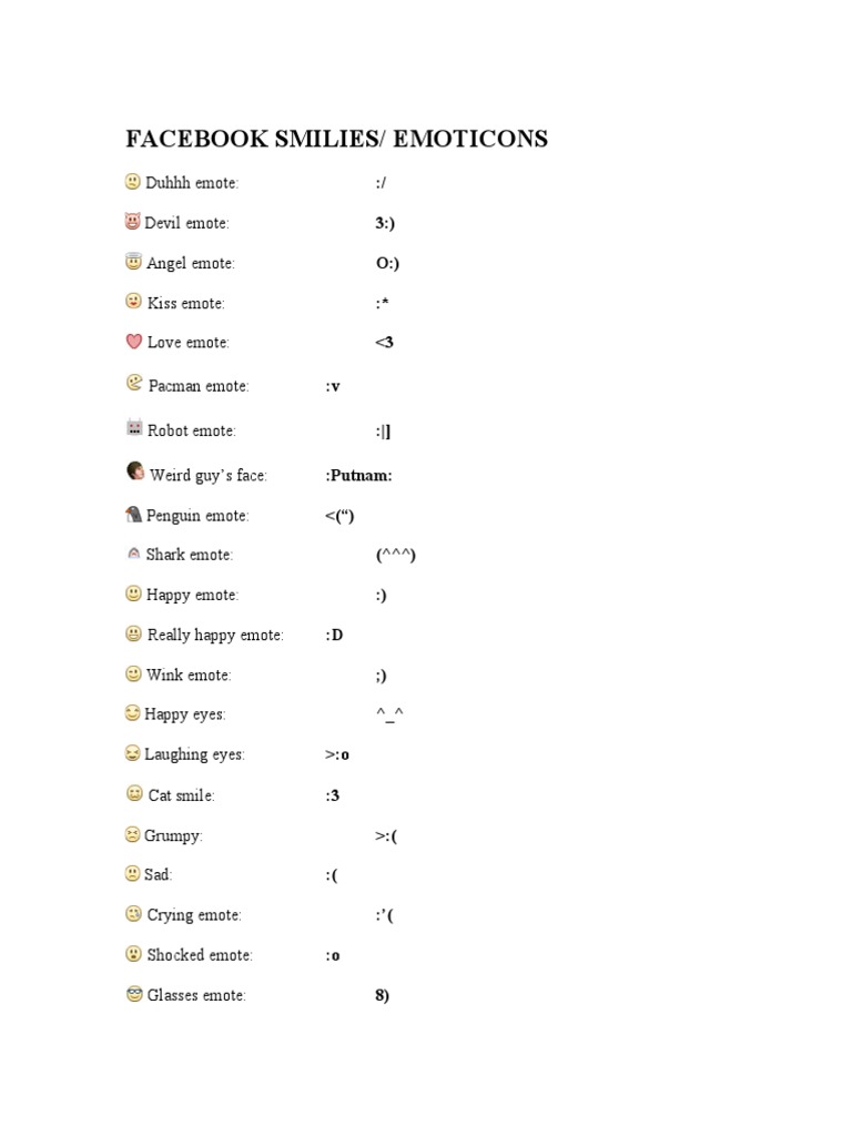 emoticons shortcut keys - Google Search | Facebook emoticons, Emoticon ...