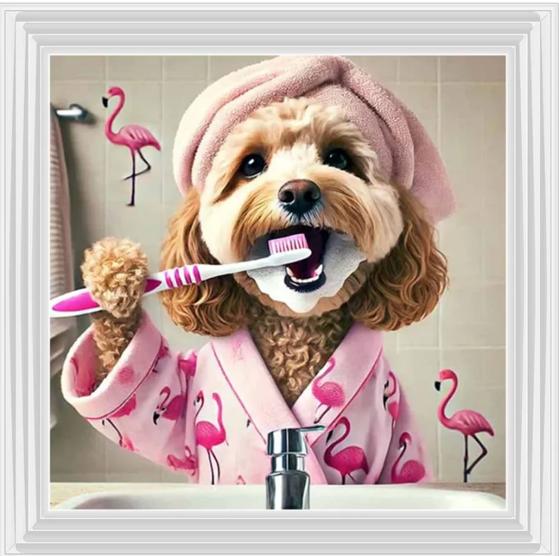 Lady Cockapoo Brushing Teeth Picture - Norwich Art