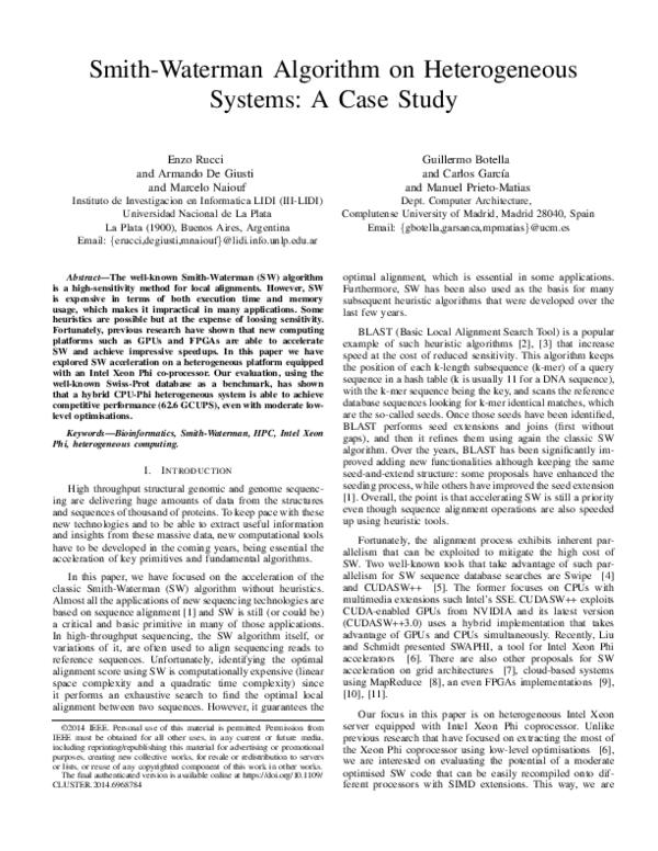(PDF) Smith-Waterman algorithm on heterogeneous systems: A case study
