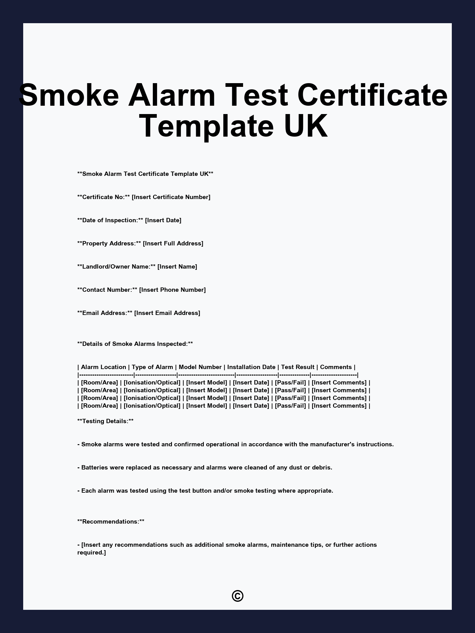 Smoke Alarm Test Certificate Template UK