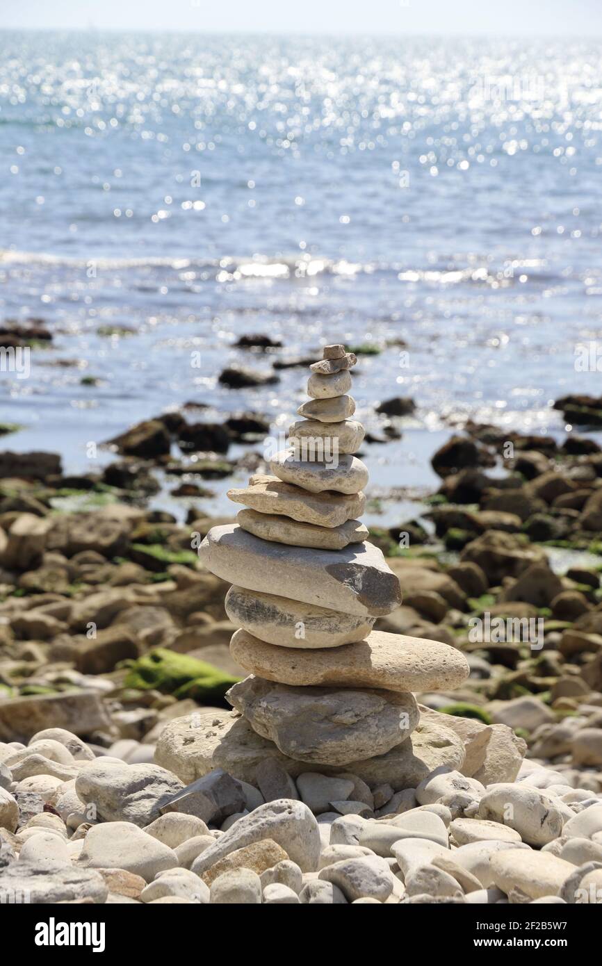 Pebbles stacked in sea hi-res stock photography and images - Alamy