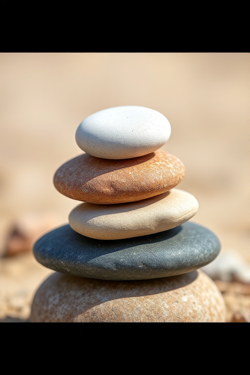 Stacked Smooth Pebbles on Rippling Sand Under Soft Lighting in a ...