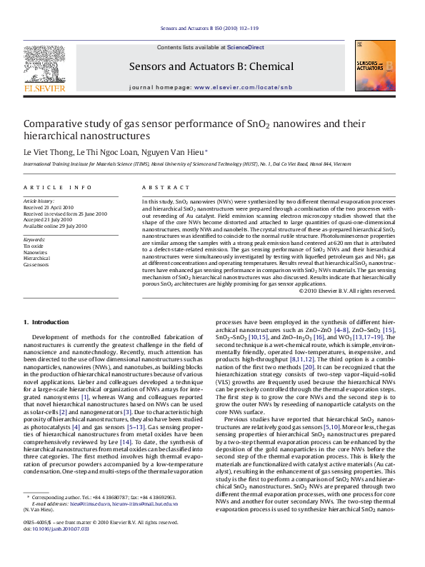 (PDF) Comparative study of gas sensor performance of SnO2 nanowires and ...