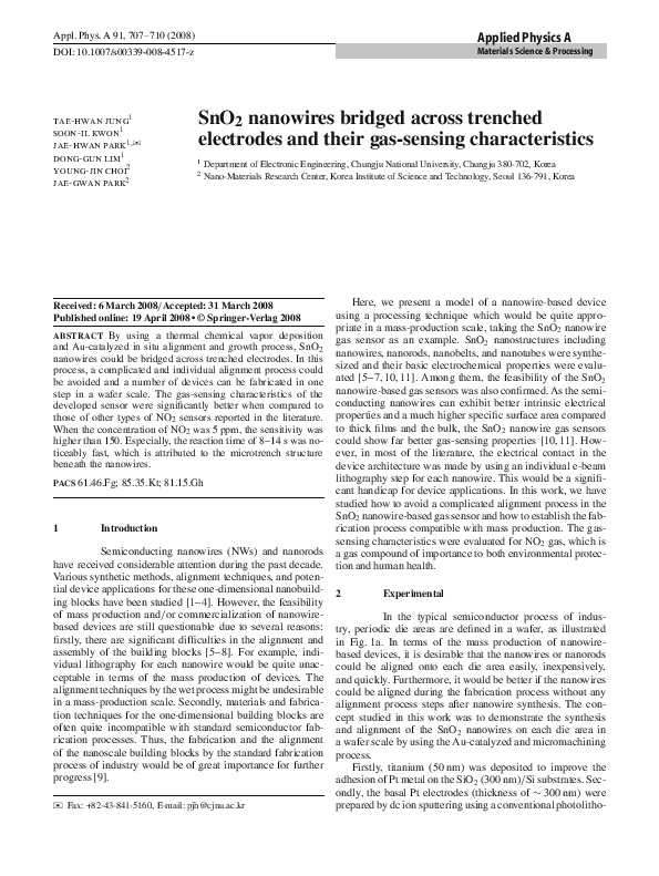 (PDF) SnO2 nanowires bridged across trenched electrodes and their gas ...
