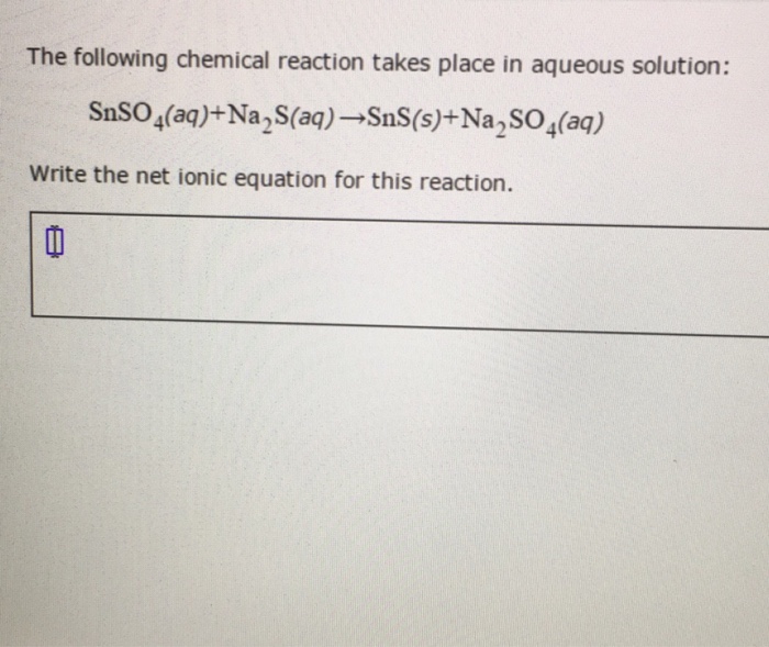 Solved Zn(s)+SnSO4(aq)→ZnSO4(aq)+Sn(s) SnSO4 this is not a | Chegg.com