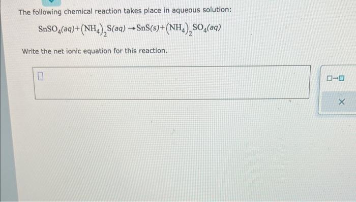 SnSO4(aq)+(NH4)2S(aq)→SnS(s)+(NH4)2SO4(aq)Write the | Chegg.com