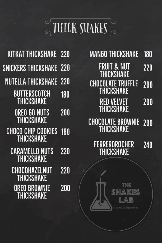 Menu of The Shakes Lab, L B Nagar, Hyderabad