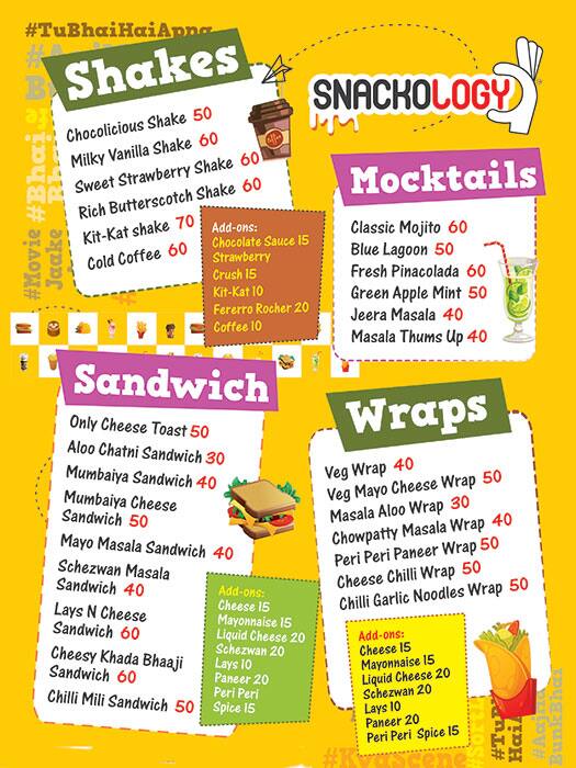 Menu of Snackology, Vile Parle East, Mumbai