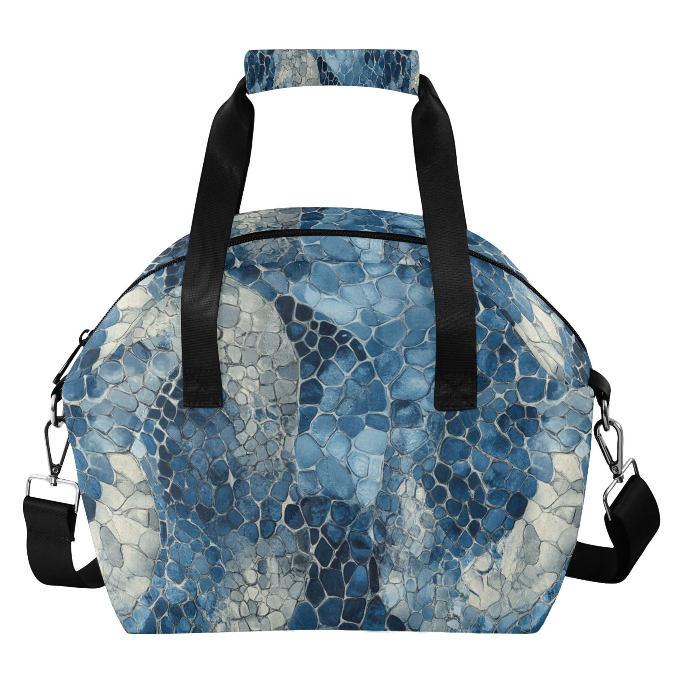 Blue Snake Skin Vintage Insulated Lunch Bag Reusable Quilted Lunch Box ...
