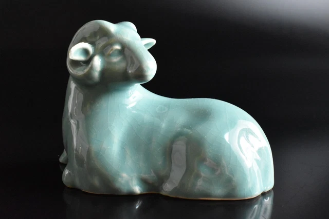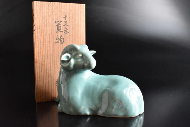 S9563: JAPANESE KIYOMIZU-WARE Celadon snake STATUE sculpture, auto w ...