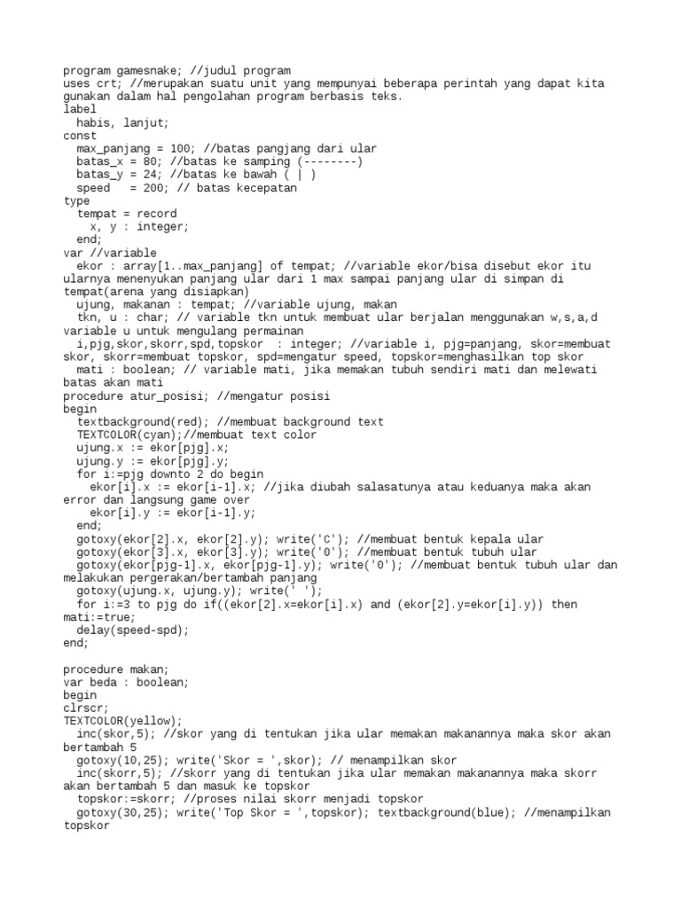 Kode Game Snake Pascal | PDF