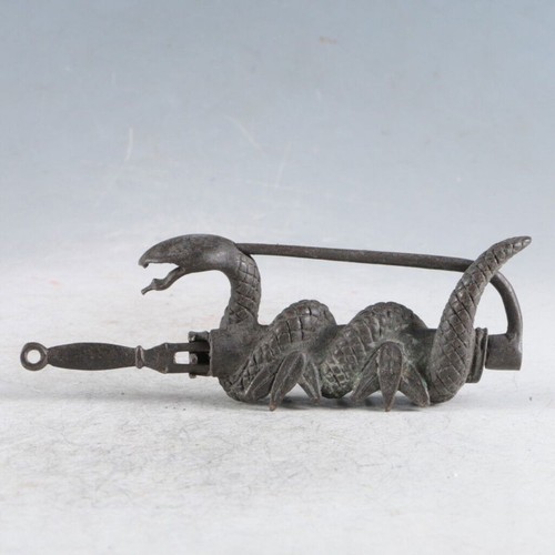 Collectible Chinese Old Style Brass Handmade Snake Lock With Key Statue ...