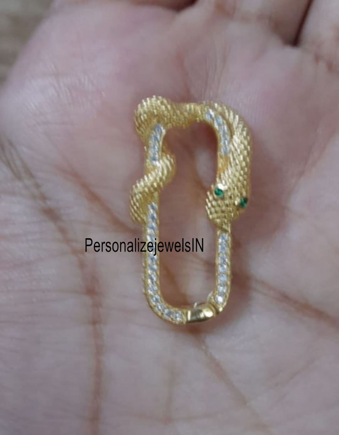 Gold Vermeil Silver Snake Lock Enhancer, Carving Snake Charm Holder ...