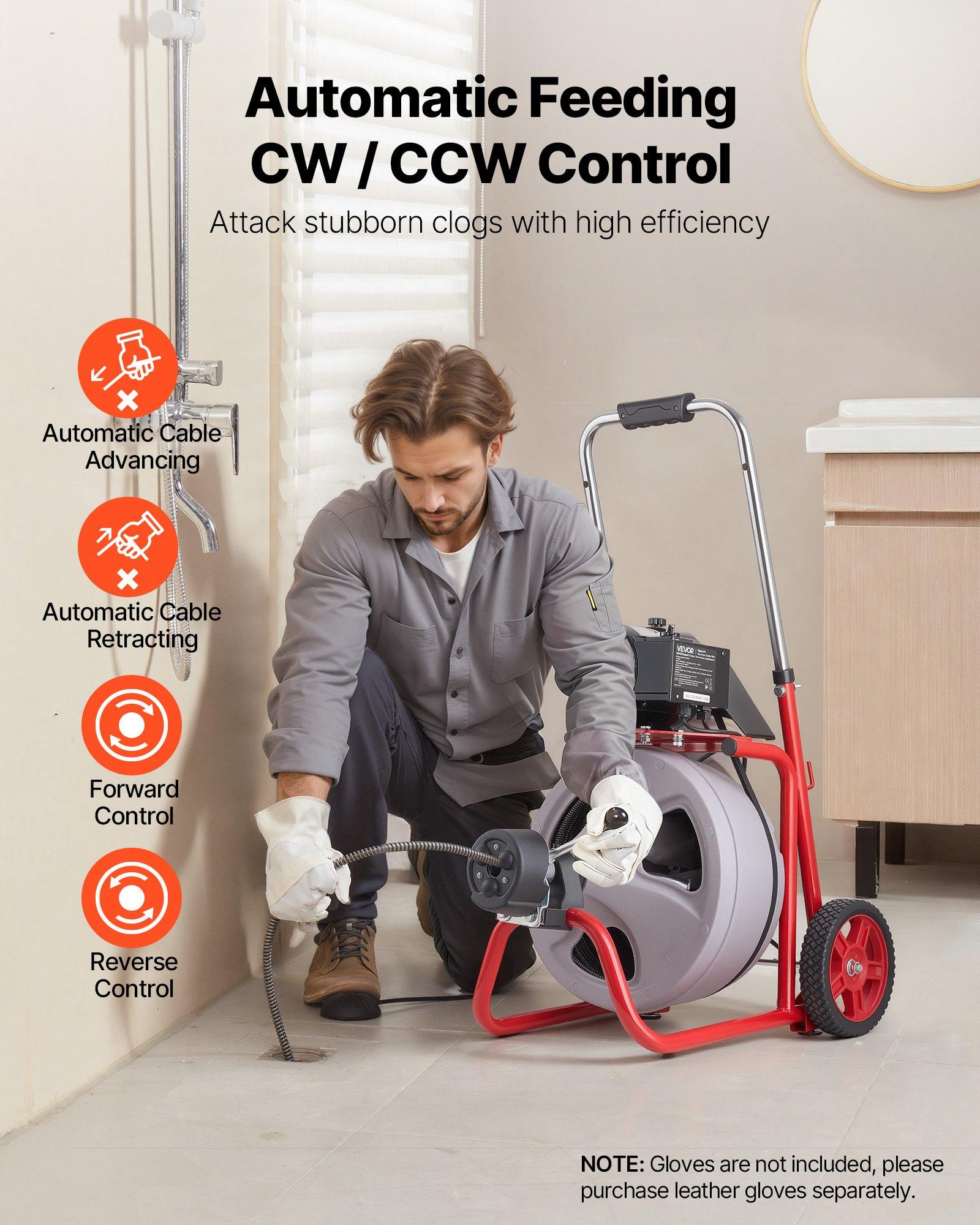 VEVOR 100FT x 3/4 Inch Cleaning Sewer Snake Machine Auto Feed Drain ...