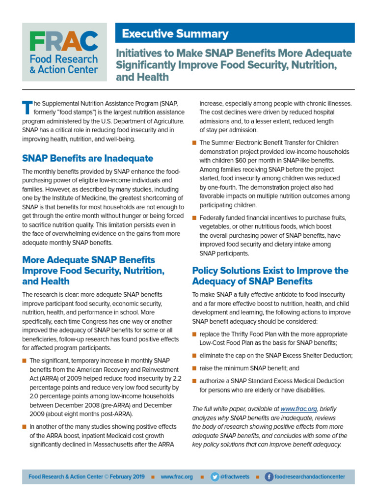 Executive Summary Snap Initiatives To Make Snap Benefits More Adequate ...
