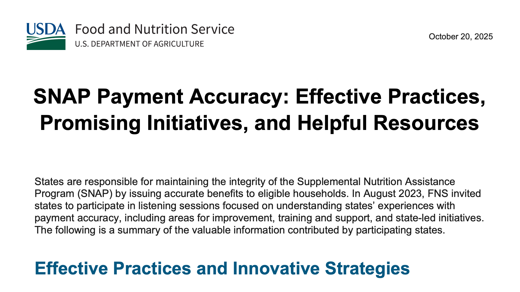 SNAP Payment Accuracy: Effective Practices, Promising Initiatives, and ...
