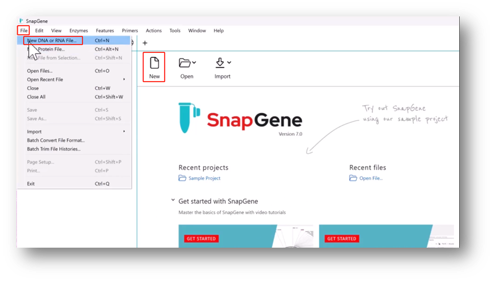 How to Create Open and Import a File in SnapGene [Archived] | SnapGene