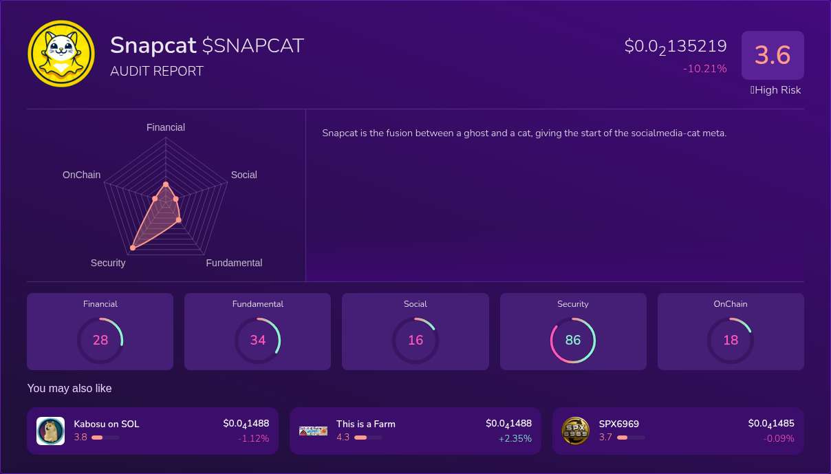 Kryll³ | $SNAPCAT (Snapcat) X-Ray Score – Trusted Token Audit, On-Chain ...