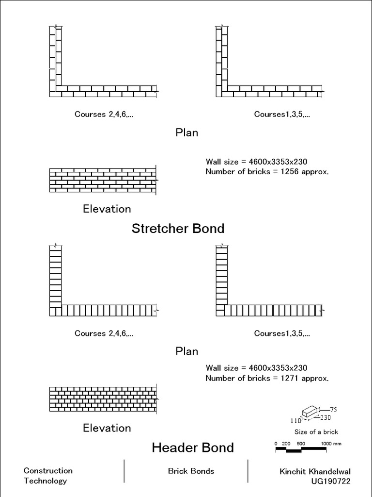 Header Bond Drawing (Part-1) Elevation | Plan of Odd and Even Course ...