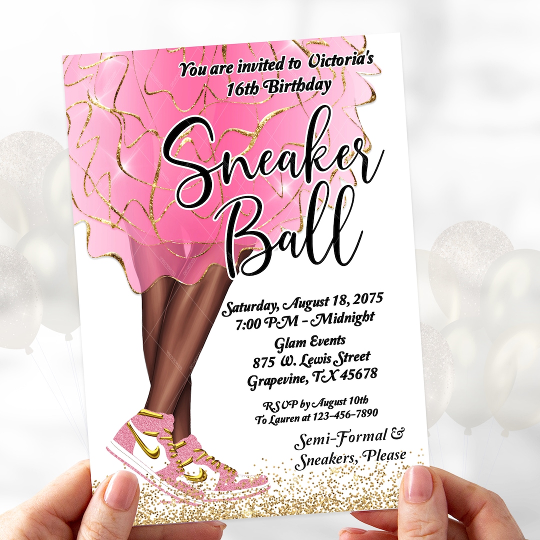 Pink & Gold Sneaker Ball Invitation: Woman's Birthday (digital Download ...