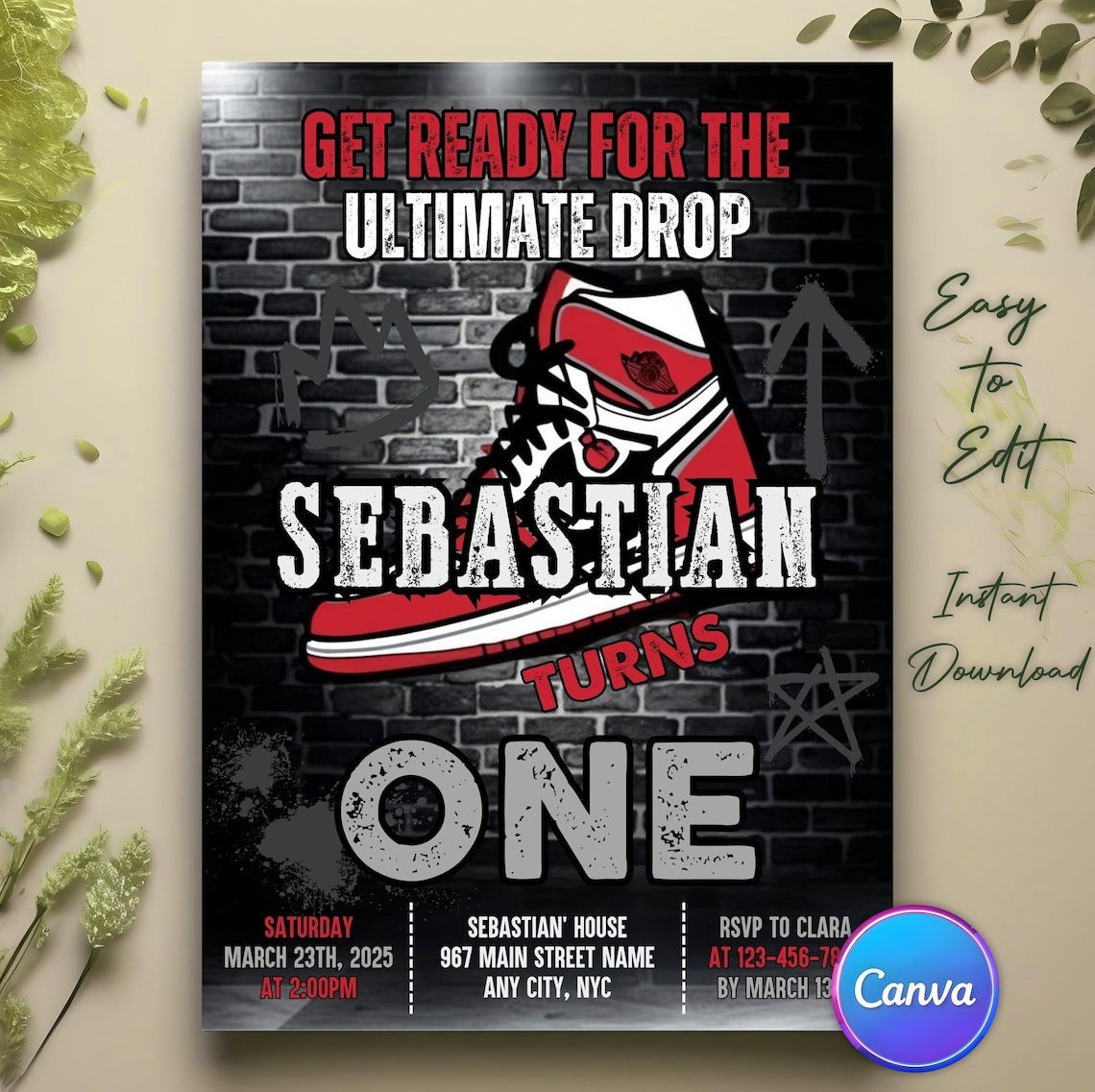 Sneaker Ball Birthday Invitation Template: Edit in Canva - Etsy