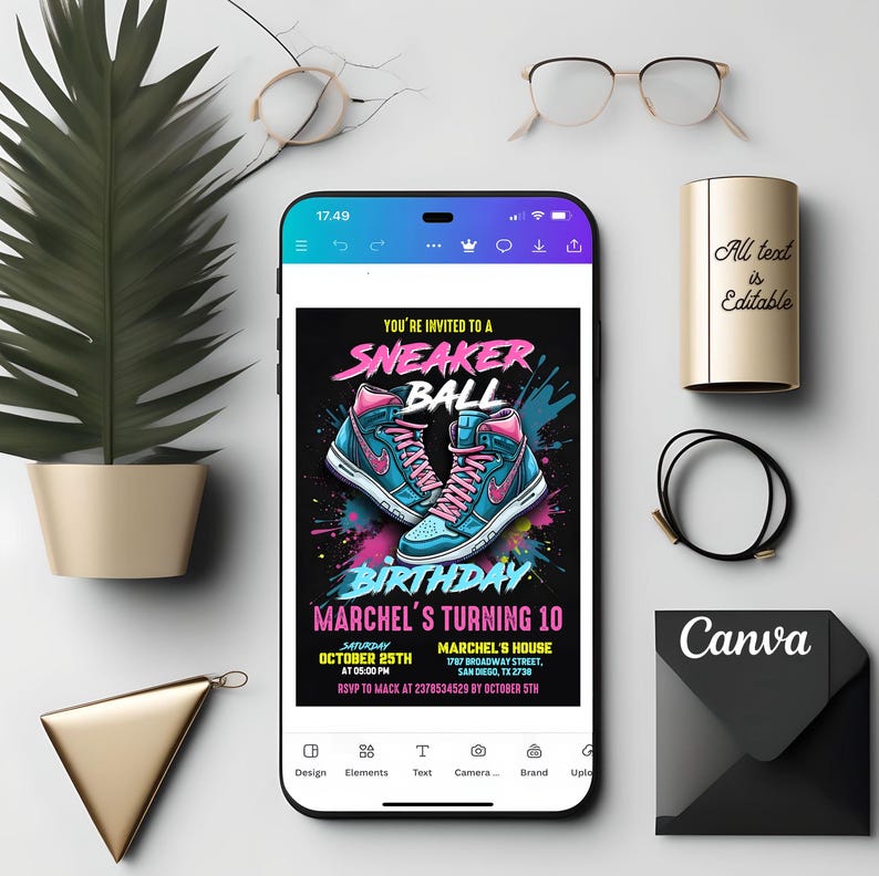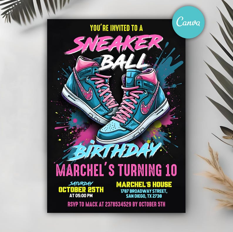 Sneaker Ball Birthday Invitation: Printable, Editable in Canva - Etsy