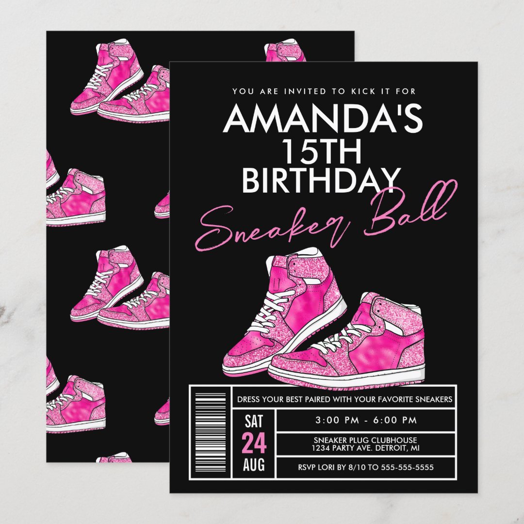Sneaker Ball Birthday Party Invitation, Girls Pink Sneaker Invites ...