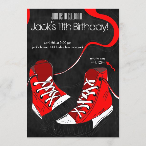 Red black sneaker ball birthday party invitation zazzle – Artofit