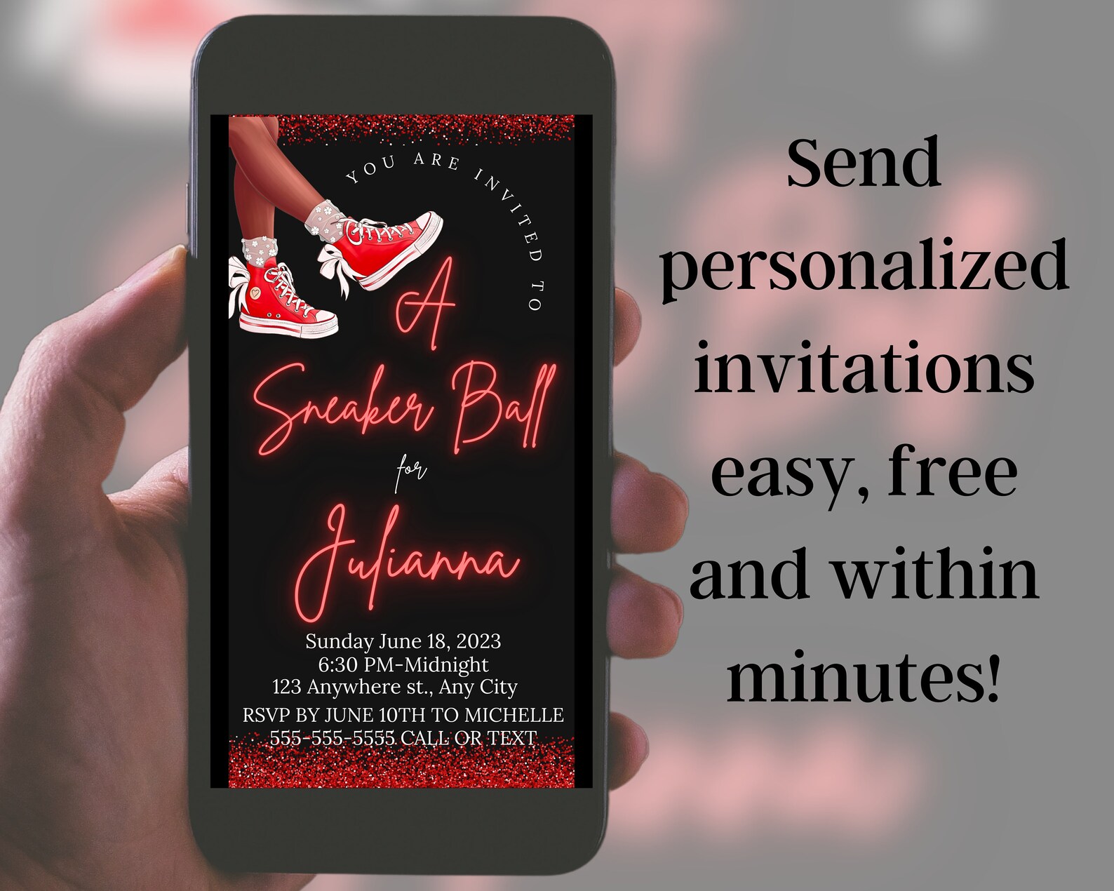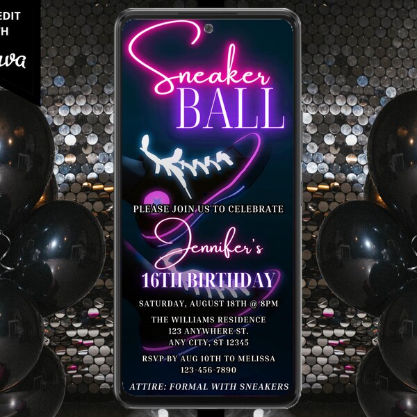 Animated Sneaker Ball Party Invitation for Mobile, Self Edit ...