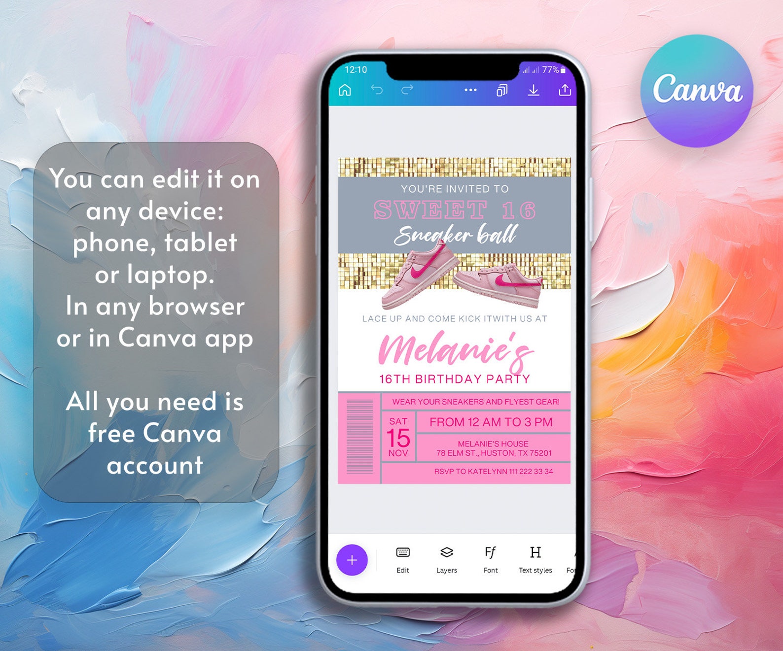 Sneaker Ball Party Invitation Customizable and Editable Digital Invite ...