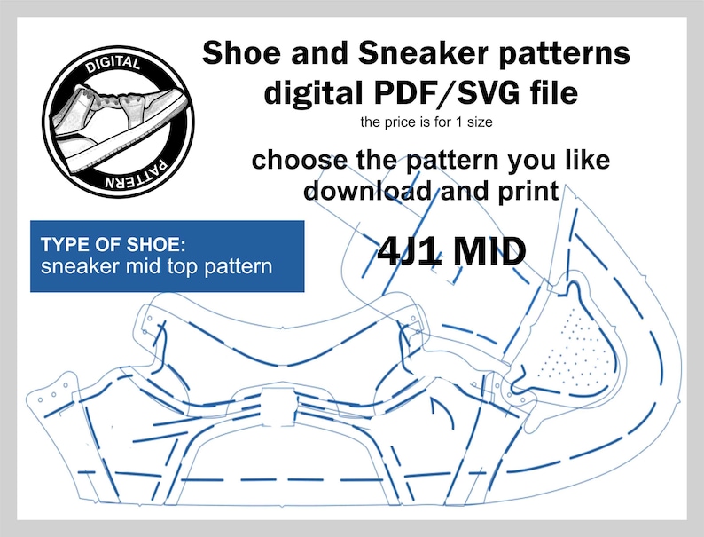 Shoe , SNEAKER Digital Pattern - Just One Size Included-pdf SVG- A3 ...