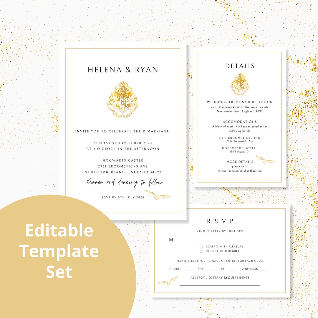 4 Houses and Golden Snitch Inspired Invitation, Details Card, & RSVP ...