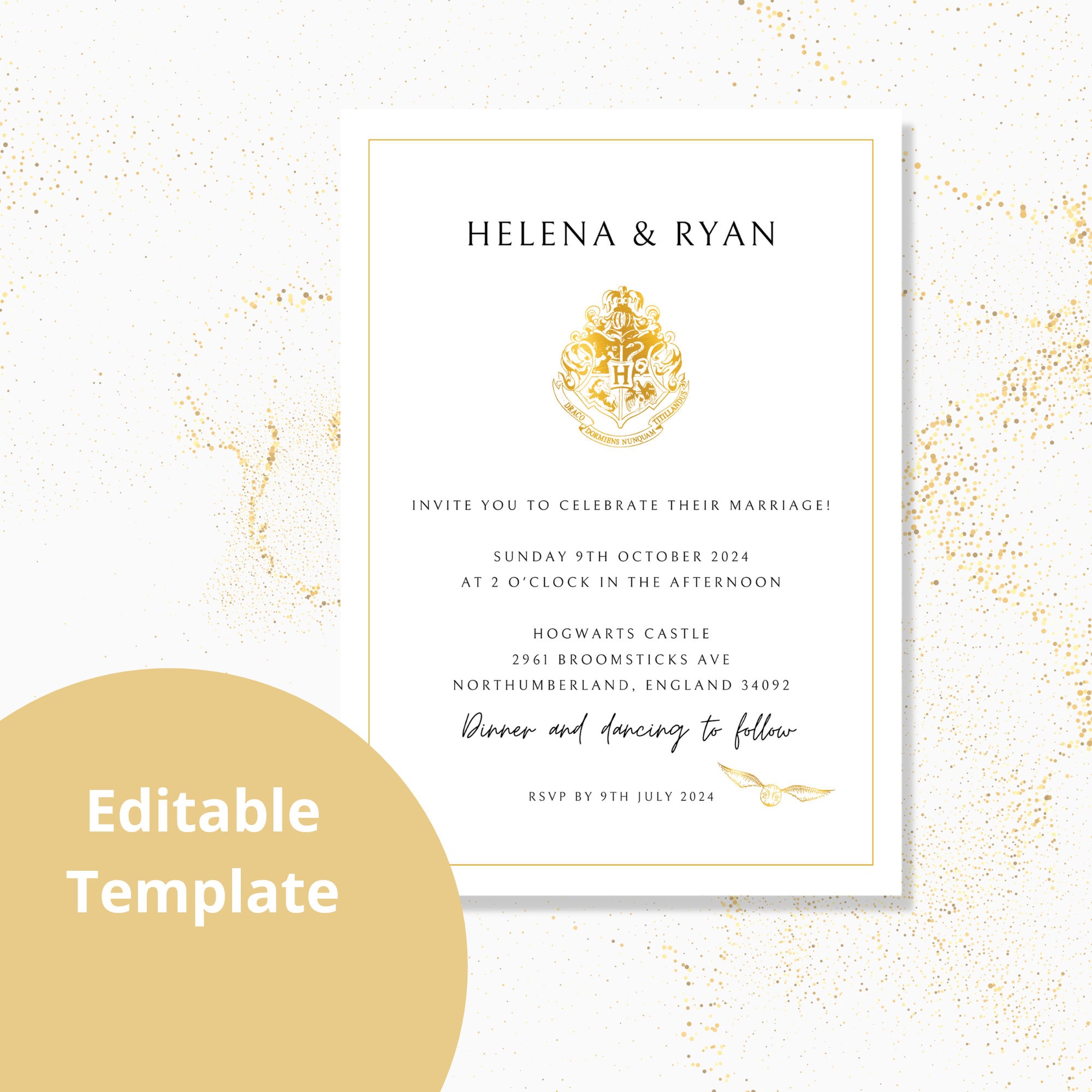 Golden Snitch Inspired Invitation Canva Template - Printable Download ...